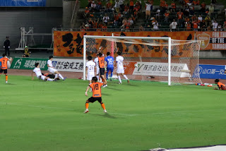 山口はPKの前の水戸FW15宮本選手のオフサイドの抗議するも認められず、キッカーの水戸MF46伊藤涼選手は山口GK17吉満選手の動きを見切り、冷静に右隅にゴールを決めました。