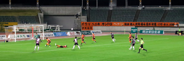 山口FW9イウリ選手(左隅に右手部分?)のミドルシュート